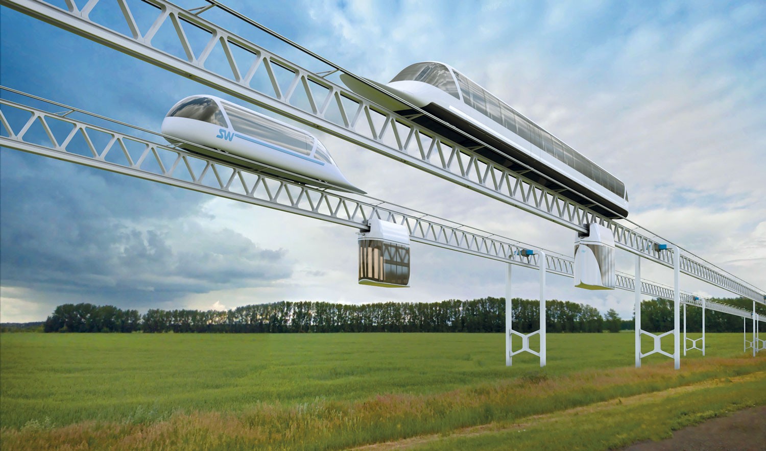 SkyWay are overpass-type systems. One extremely important fact is associated with it. In many cases it makes the modules small in terms of space and size preferable. The point is that such a configuration of rolling stock makes it possible to reduce the material consumption, and hence the cost of the overpass. And everything is explained quite simply.