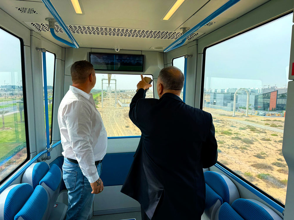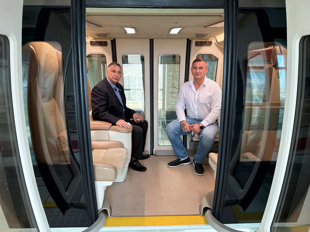 During the uSky tour, the uSky Transport team showcased elements of the intelligent control system, demonstrated movement monitoring in the dispatch centre, and explained how infrastructure condition control is carried out at all stages of operation and testing. The guest also familiarised himself with the structural solutions of the track system and approaches to ensuring sustainability in various climatic conditions.