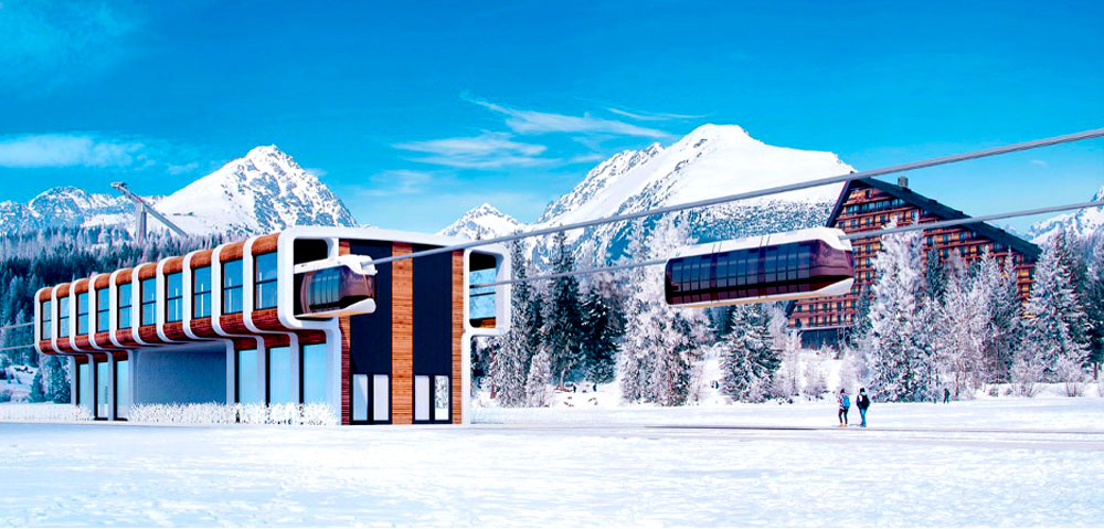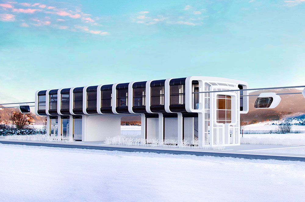 In this visualization uSky Transport station comes to life among winter peaks, creating a sense of tranquility